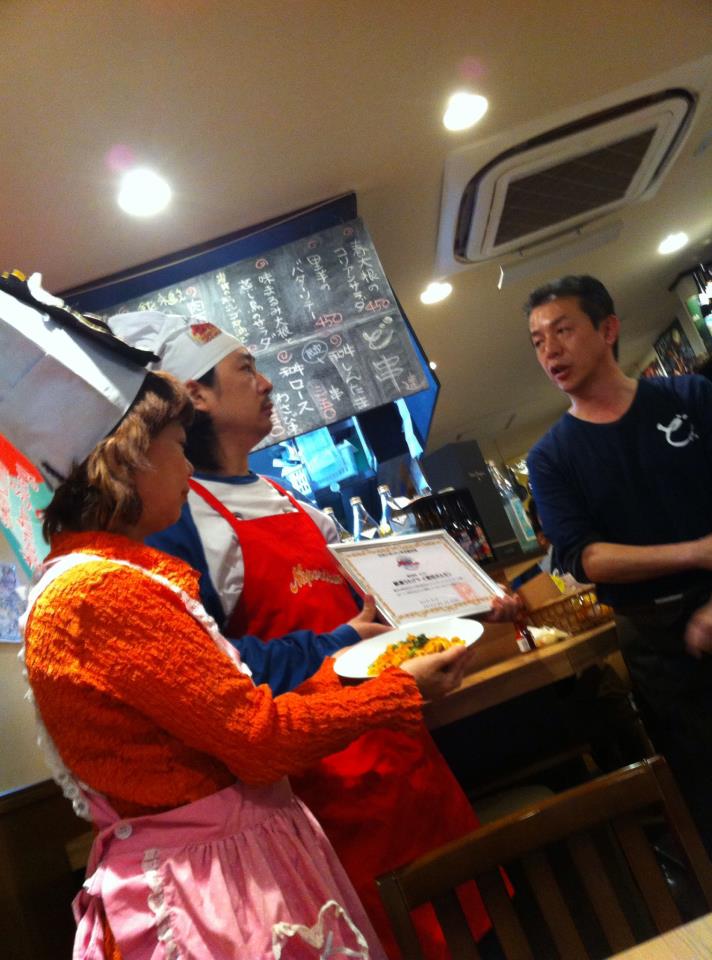 4月6日、あいにくの悪天候でしたが、日本ナポリタン学会の横浜市西区初の認定店舗「横濱うたげや ご根性ほるもん」での認定式が行われました。このお店で開発された「モツ煮ナポリタン」は、トマトで煮込んだモツをふんだんに入れた変わりナポリタンです。麺はうどんを使っていますが、しっかりとフライパンで炒めてありますので、学会としてはナポリタンとして認めることになりました。